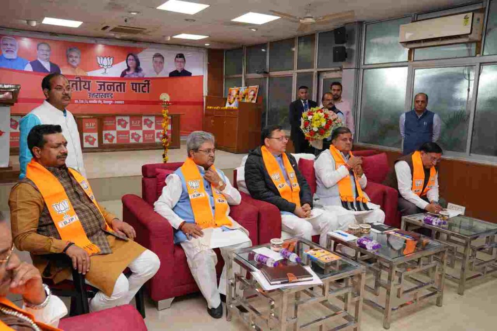 बैठक में प्रदेश प्रभारी दुष्यंत गौतम, मुख्यमंत्री पुष्कर धामी, प्रदेश अध्यक्ष महेंद्र भट्ट, महामंत्री संगठन अजेय कुमार, कैबिनेट मंत्री सौरभ बहुगुणा, पूर्व मुख्यमंत्री त्रिवेंद्र रावत, केंद्रीय राज्य मंत्री अजय भट्ट, सांसद अजय टम्टा और माला राज्यलक्ष्मी शाह आदि मौजूद रहे।