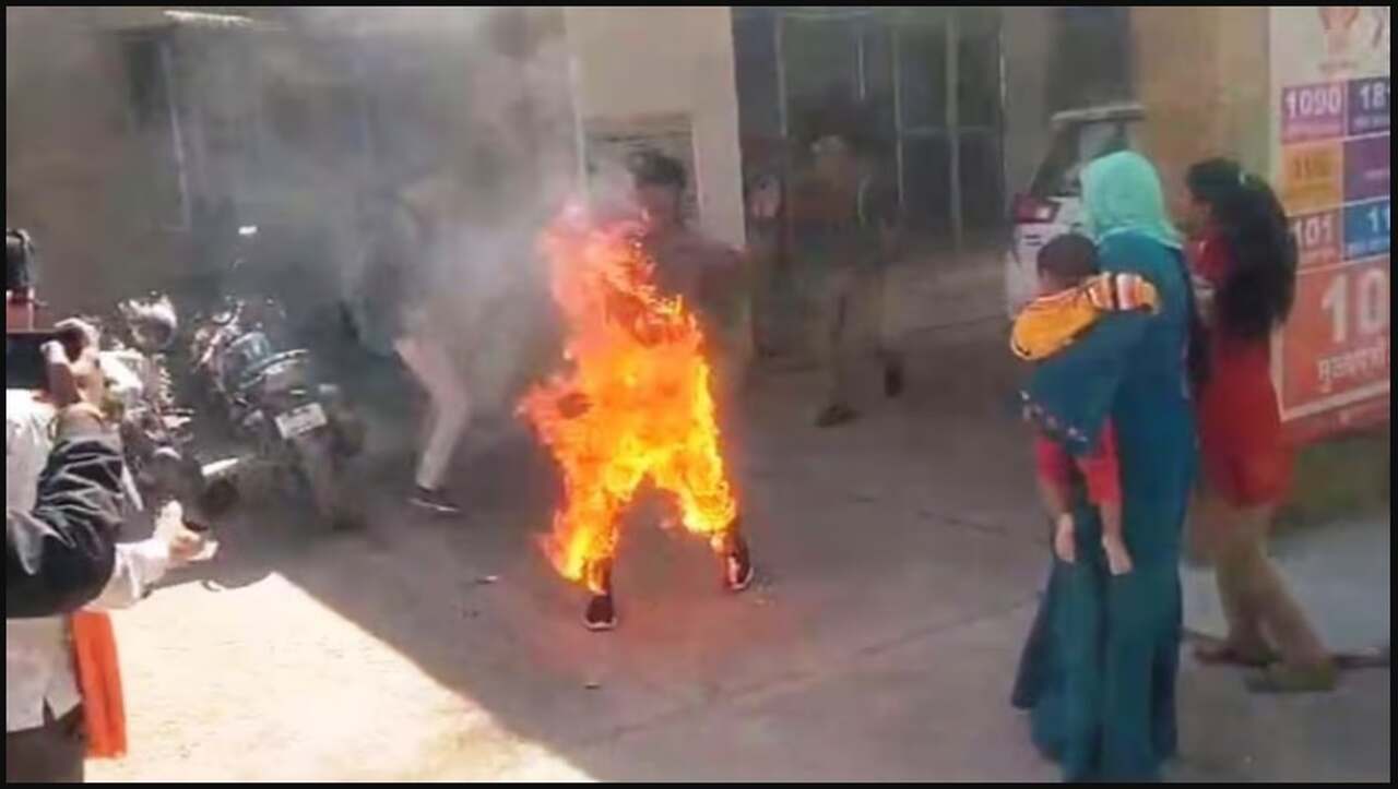 गाड़ी चोरी की FIR नहीं लिखी, तो शख्स ने SP ऑफिस के बाहर खुद को लगा ली आग, बेबस बच्चे चिल्लाते रहे पापा-पापा, सामने आया Video, पुलिस का बयान भी सुनें…