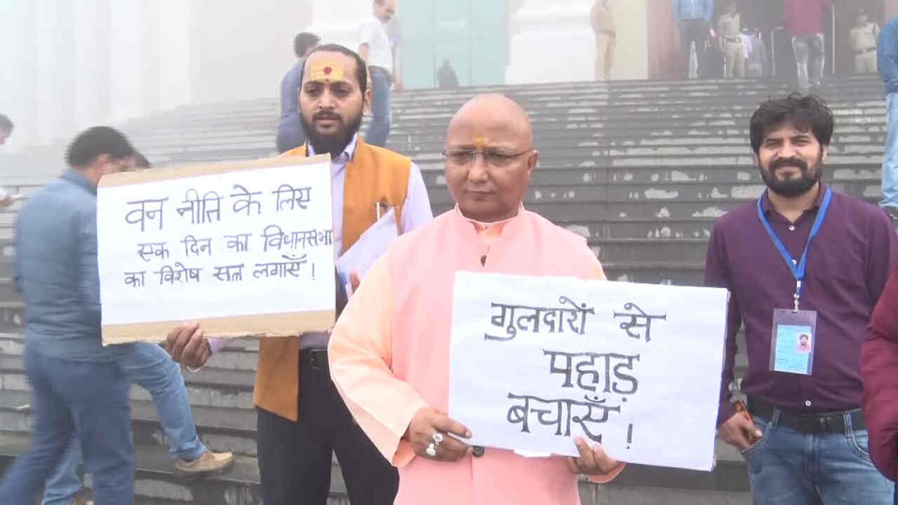 सदन के बाहर बीजेपी विधायक दिलीप रावत ने लहराये “गुलदारों से पहाड़ बचाएं लिखे पोस्टर, स्पेशल सत्र बुलाए जाने की मांग भी की