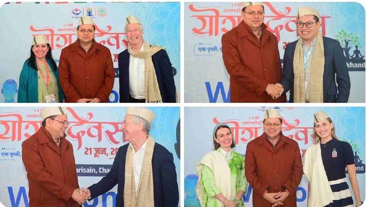 योगदिवस में शिरकत करने पहुंचे विदेशी मेहमानों को धामी ने भेंट किये प्रतीक चिन्ह, उत्तराखंड को बताया योग और आयुष की वैश्विक राजधानी