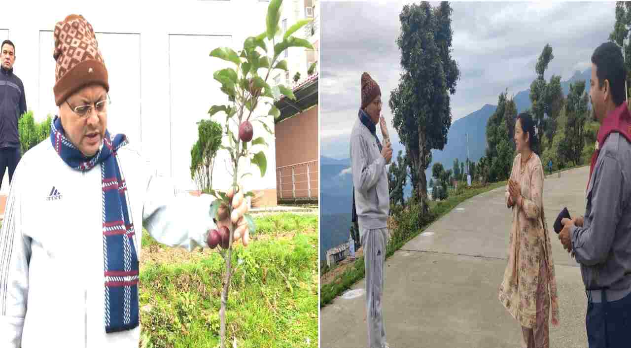 गैरसैंण में भ्रमण के दौरान परिसर में लगे सेब के पौधों का सीएम धामी ने किया निरीक्षण, कहा – सेब के बागान लगाने वाले किसानों को 80 प्रतिशत सब्सिडी दे रही सरकार