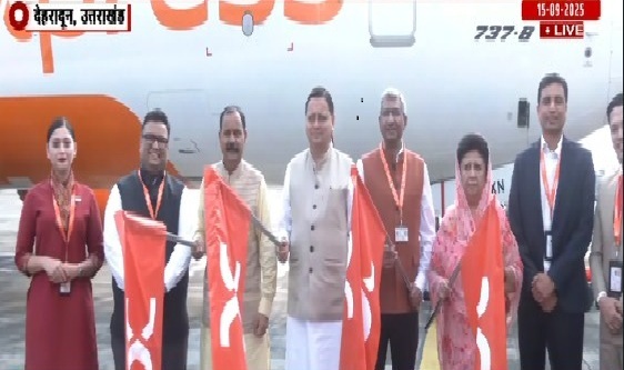 देहरादून से एयर इंडिया एक्सप्रेस द्वारा देहरादून-बेंगलुरु के लिए शुरू की गई नई हवाई सेवा, सीएम धामी ने किया फ्लैग ऑफ