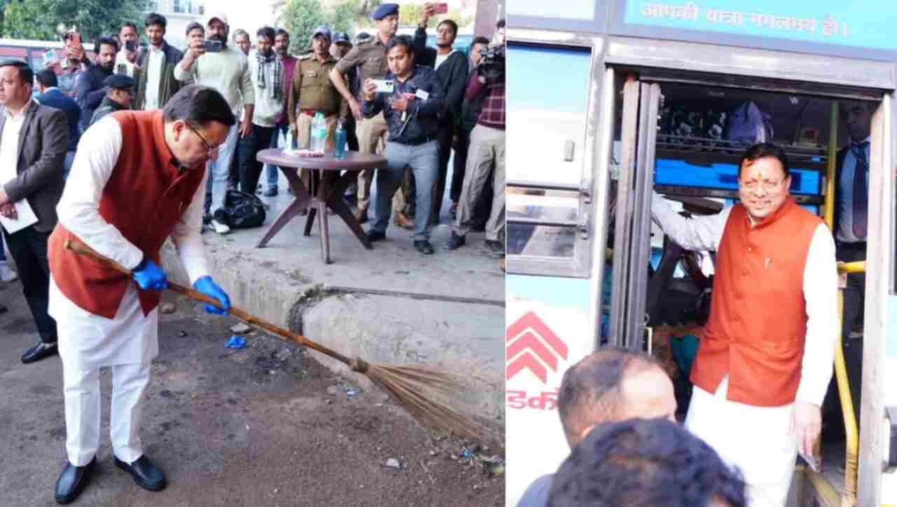 CM धामी ने किया देहरादून ISBT का औचक निरीक्षण, आईएसबीटी परिसर में गंदगी देख नाराज हुए CM, खुद झाड़ू थामकर की सफाई, अधिकारियों को दी चेतावनी