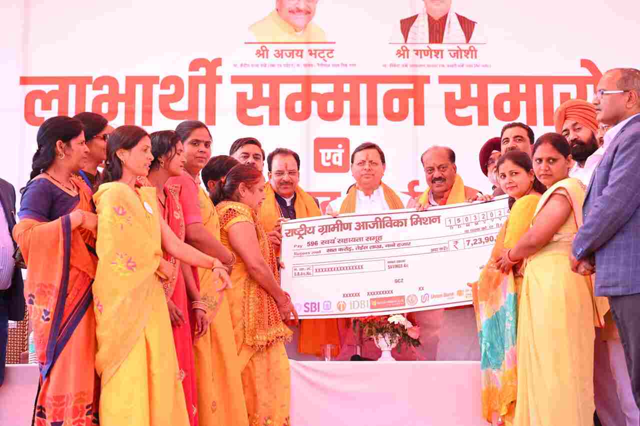 मुख्यमंत्री धामी ने जनकल्याणकारी योजनाओं से लाभान्वित होने वाले लाभार्थियों में से श्रीमती अकलिमा, श्रीमती महबूब जहाँ (प्रधानमंत्री आवास योजना की लाभार्थी) एवं स्वयं सहायता समूह की कोमल से वार्ता की वार्ता के दौरान लाभार्थियों ने मुख्यमंत्री का आभार प्रकट करते हुए धन्यवाद दिया। इसी क्रम में ग्राम्य विकास समूह के लाभार्थियों को 17 करोड़ 24 लाख, सहकारिता विभाग के लाभार्थियों को 13 करोड़ 92 लाख व स्वास्थ्य विभाग के 3आयुष्मान कार्ड, खाद्य विभाग के 2 लाभार्थियों को उज्ज्वला किट वितरित किए गए।