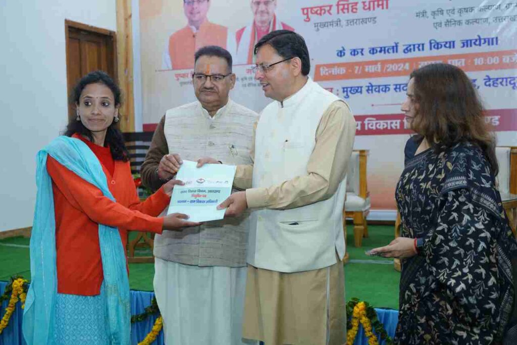 देहरादून: मुख्यमंत्री पुष्कर सिंह धामी ने गुरुवार को मुख्य सेवक सदन में ग्राम विकास विभाग के अंतर्गत अधीनस्थ चयन सेवा आयोग के माध्यम से चयनित 394 ग्राम विकास अधिकारियों के पद पर नियुक्त अभ्यर्थियों को नियुक्ति पत्र प्रदान किये।