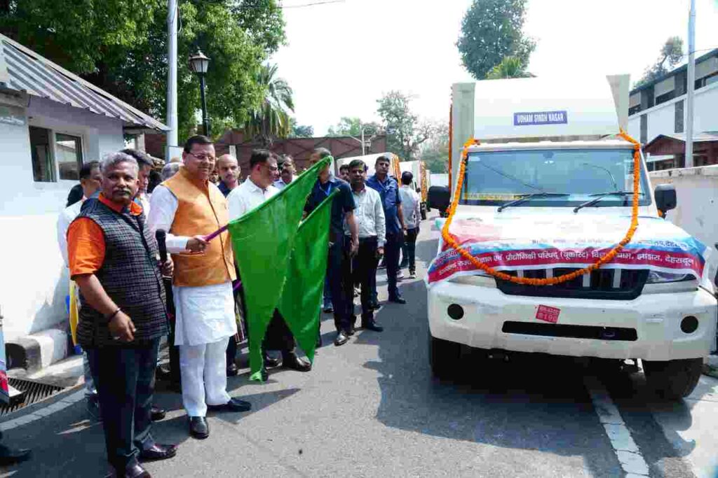 देहरादून: मुख्यमंत्री पुष्कर सिंह धामी द्वारा प्रदेश के सरकारी विद्यालयों में पढ रहे छात्र-छात्रओं को लैब ऑन व्हील्स के माध्यम से 9 मोबाईल सांइस लैब की सौगात दी गई। मुख्यमंत्री ने कैम्प कार्यालय परिसर में मोबाईल सांइस लैब के विज्ञान माॅडलों का अवलोकन किया और 09 मोबाईल सांइस लैब को हरी झण्डी दिखा कर रवाना किया। पिछले वर्ष भी मुख्यमंत्री ने राज्य के चार जिलों चम्पावत, अल्मोड़ा, देहरादून एवं पौड़ी के लिए मोबाईल सांइस लैब को हरी झण्डी दिखा कर रवाना किया था।