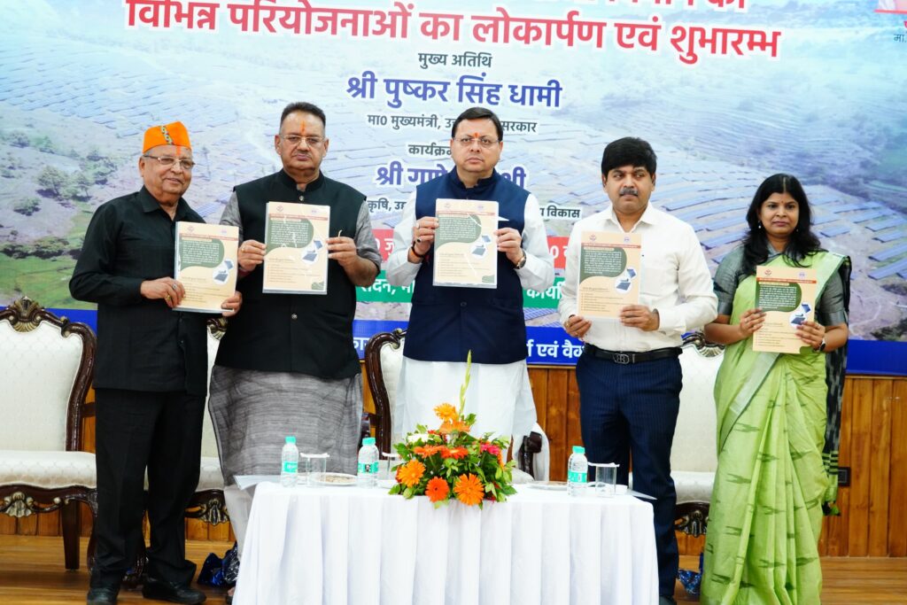 देहरादून: मुख्यमंत्री पुष्कर सिंह धामी ने शनिवार को मुख्यमंत्री कैम्प कार्यालय स्थित मुख्य सेवक सदन में उरेडा द्वारा संचालित विभिन्न योजनाओं का लोकार्पण एवं शुभारंभ किया। इस अवसर पर उन्होंने सोलर वाटर हीटर अनुदान योजना में आवेदन एवं अनुदान निर्गत किये जाने के लिए पोर्टल www.uredaonline.uk.gov.in का शुभारम्भ किया गया। प्रदेश के राजकीय भवनों पर स्थापित सोलर पावर प्लान्ट एवं सोलर वाटर हीटर, 27 जवानों पर 1.26 मे.वा. क्षमता के सोलर पावर प्लान्ट तथा 44 राजकीय भवनों पर स्थापित 48400 लीटर क्षमता के सोलर वाटर हीटर सयंत्रों का लोकार्पण किया। कार्यक्रम के मुख्यमंत्री सौर स्वरोजगार योजना के 47 लाभार्थियों को परियोजना आवंटन पत्र प्रदान किये गये तथा 04 संख्या लाभार्थियों को पी0एम0 सूर्यघर योजना के अन्तर्गत राज्य अनुदान के चेक प्रदान किये गये।