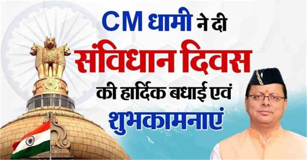 देहरादूनः आज यानी 26 नवंबर को पूरा देश संविधान दिवस मना रहा है। भारत में प्रत्येक वर्ष आज के दिन को संविधान दिवस के रूप में मनाया जाता है। वहीं, इस मौके पर उत्तराखंड के मुख्यमंत्री पुष्कर सिंह धामी ने प्रदेशवासियों को हार्दिक बधाई एवं शुभकामनाएं दी हैं।