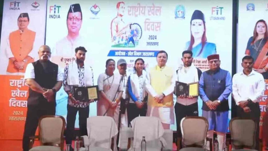 देहरादून: राष्ट्रीय खेल दिवस के अवसर पर सीएम पुष्कर सिंह धामी ने देहरादून में आयोजित कार्यक्रम में प्रतिभाग किया। इस दाैरान सीएम धामी ने पेरिस ओलंपिक में भाग लेने वाले उत्तराखंड के चार खिलाड़ियों लक्ष्य सेन, सूरज पंवार, अंकिता ध्यानी और परमजीत सिंह बिष्ट को सम्मानित किया। मुख्यमंत्री ने खिलाड़ियों को डिजिटल माध्यम से धनराशि भी हस्तांतरित की।