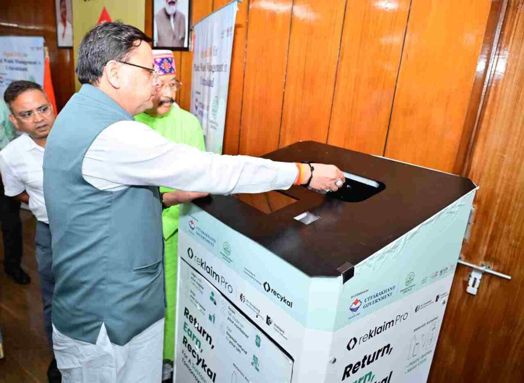 देहरादून: मुख्यमंत्री पुष्कर सिंह धामी ने बुधवार को सचिवालय में प्रदूषण नियंत्रण बोर्ड द्वारा संचालित प्लास्टिक वेस्ट मेनेजमेंट के डिजिटल डिपॉजिट रिफन्ड सिस्टम का शुभारंभ किया। इस अवसर पर मुख्यमंत्री ने स्वयं प्लास्टिक की बोतल को बार कोड से स्कैन कर डिजिटल पेमेंट प्राप्त किया। मुख्यमंत्री पुष्कर सिंह धामी ने कहा कि पर्यावरण संरक्षण, प्लास्टिक की खपत को कम करने एवं अधिक से अधिक प्लास्टिक को रिसाइकल कर, उसे इस्तेमाल में लाने के लिए डिजिटल डिपॉजिट रिफन्ड सिस्टम का शुभारंभ एक महत्वपूर्ण कदम है। उन्होंने कहा डिजिटल डिपॉजिट रिफन्ड सिस्टम को धरातल में उतारने के लिए समन्वय से कार्य किये जाएं। यह पहल चार धाम यात्रा एवं अन्य पर्यटन स्थलो में भी कूड़े की खपत को कम करते हुए स्वच्छता का वातावरण बनाने में सहायक सिद्ध होगी।