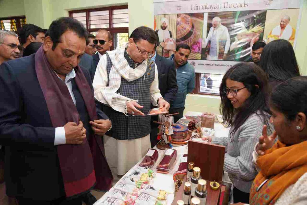 सीएम धामी ने किया गंगधारा – विचारों के अविकरल प्रवाह प्रोग्राम में शिरकत, पहाड़ी उत्पादों पर आधारित स्टालों का किया अवलोकन