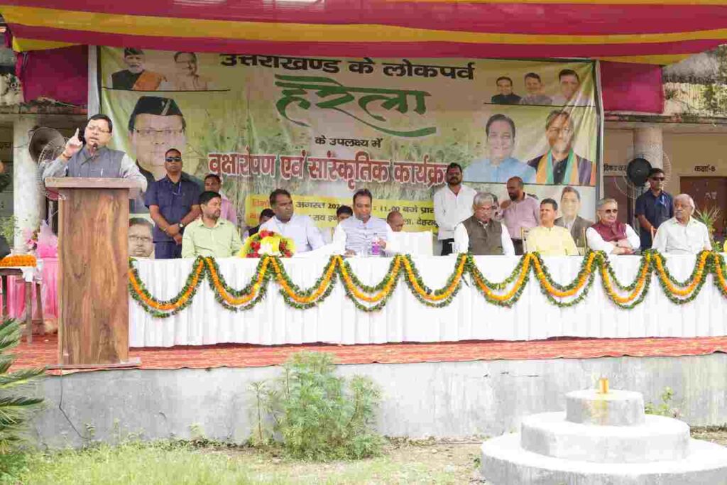 देहरादून: मुख्यमंत्री पुष्कर सिंह धामी ने शनिवार को श्री गुरूराम राय इंटर कॉलेज, मोथरोवाला, देहरादून में उत्तराखण्ड के लोकपर्व ’हरेला’ के उपलक्ष्य में आयोजित वृक्षारोपण कार्यक्रम में प्रतिभाग किया। इस अवसर पर उन्होंने पौधा रोपण कर पर्यावरण संरक्षण का संदेश दिया।