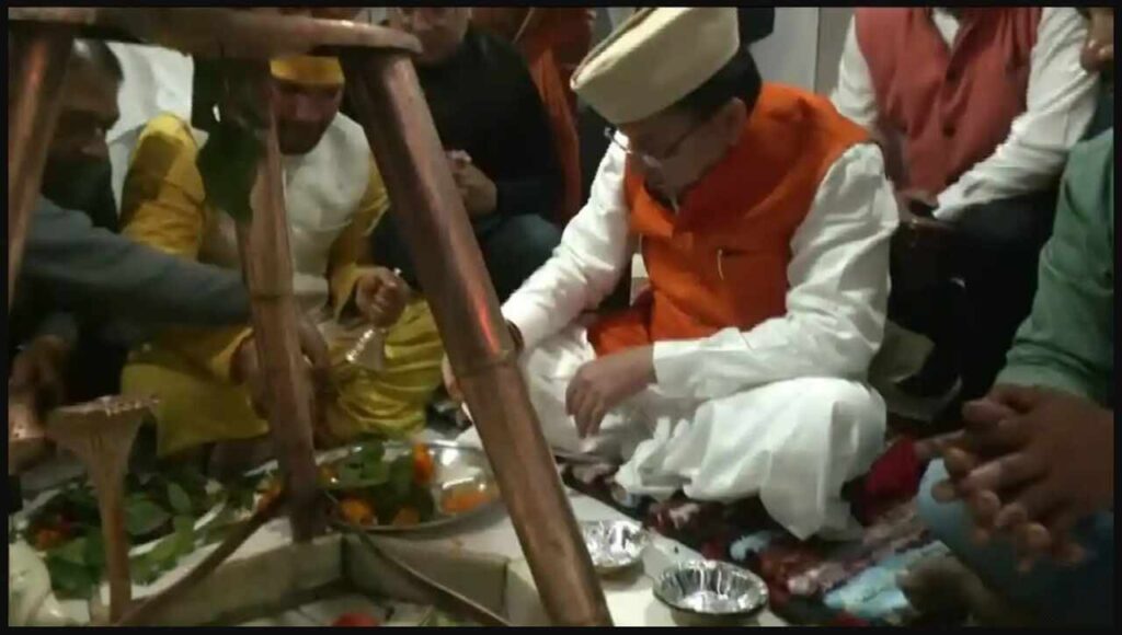 #WATCH | Khatima, Uttarakhand: CM Pushkar Singh Dhami performs Jalabhishek and Puja at Vankhandi Mahadev Temple on the occasion of #Mahashivratri, in Chakarpur. pic.twitter.com/6QqYF4g41h