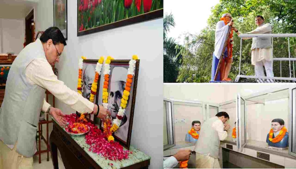 देहरादून: मुख्यमंत्री पुष्कर सिंह धामी ने गांधी जयंती के अवसर पर मुख्यमंत्री आवास में राष्ट्रपिता महात्मा गांधी का स्मरण कर उन्हें श्रद्धा सुमन अर्पित किए । मुख्यमंत्री ने कहा कि गांधी जी के सत्य व अहिंसा के सिद्धांत आज भी प्रासंगिक है। हमें अपने आचरण में अहिंसा का भाव जागृत करने के साथ ही मानवता के प्रति करूणा का भाव पैदा करना होगा। यही हमारी उनके प्रति सच्ची श्रद्धांजलि होगी।