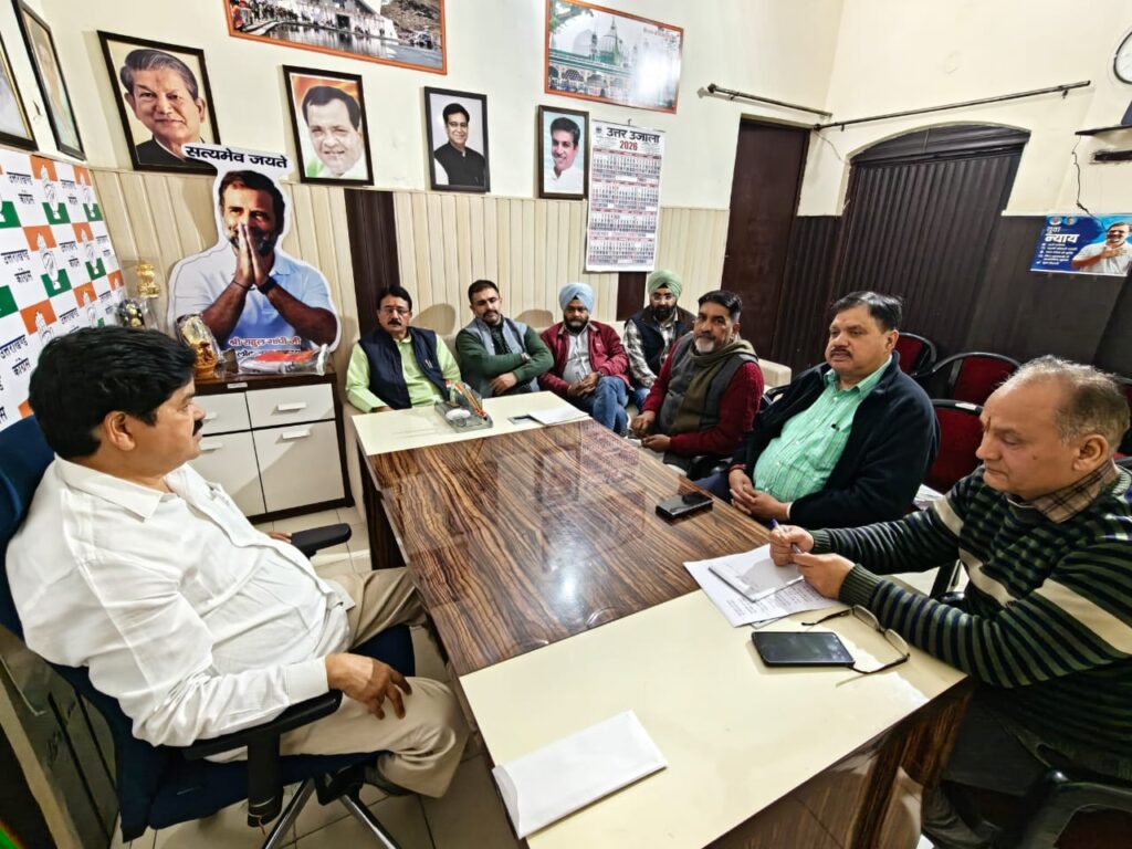 देहरादून : अखिल भारतीय कंाग्रेस के आह्रवान पर दिनांक 16 फरवरी 2026 को प्रदेश कांग्रेस कमेटी द्वारा आयोजित विशाल ’’राजभवन घेराव’’ कार्यक्रम की तैयारी हेतु उत्तराखण्ड प्रदेश कांग्रेस कमेटी के अध्यक्ष गणेश गोदियाल की अध्यक्षता में वरिष्ठ कांग्रेसजनों की बैठक प्रदेश कांग्रेस कमेटी कार्यालय, राजीव भवन, 21 राजपुर रोड़, देहरादून में आयोजित की गई। बैठक में उपस्थित सभी वरिष्ठ कांग्रेस नेताओं ने राजभवन घेराव की अपार सफलता हेतु अपने-अपने सुझाव दिये तथा अभी तक की गई तैयारियों के बारे में अवगत कराया।