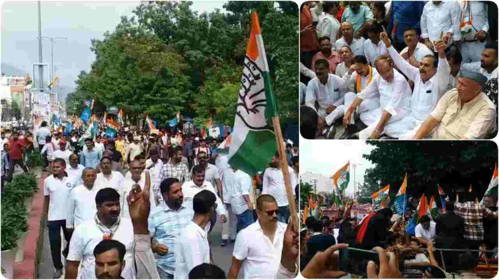 हल्द्वानी: उत्तराखंड में कांग्रेस इन दिनों बीजेपी पर हमलावर हो रखी है. तमाम मुद्दों को लेकर कांग्रेस, बीजेपी सरकार के खिलाफ विरोध प्रदर्शन कर रही है. सोमवार 30 सितंबर को भी नैनीताल जिला मुख्यालय हल्द्वानी में कांग्रेस ने नेता प्रतिपक्ष यशपाल आर्य और कांग्रेस प्रदेश अध्यक्ष करण माहरा ने नेतृत्व में जनआक्रोश रैली निकाली.