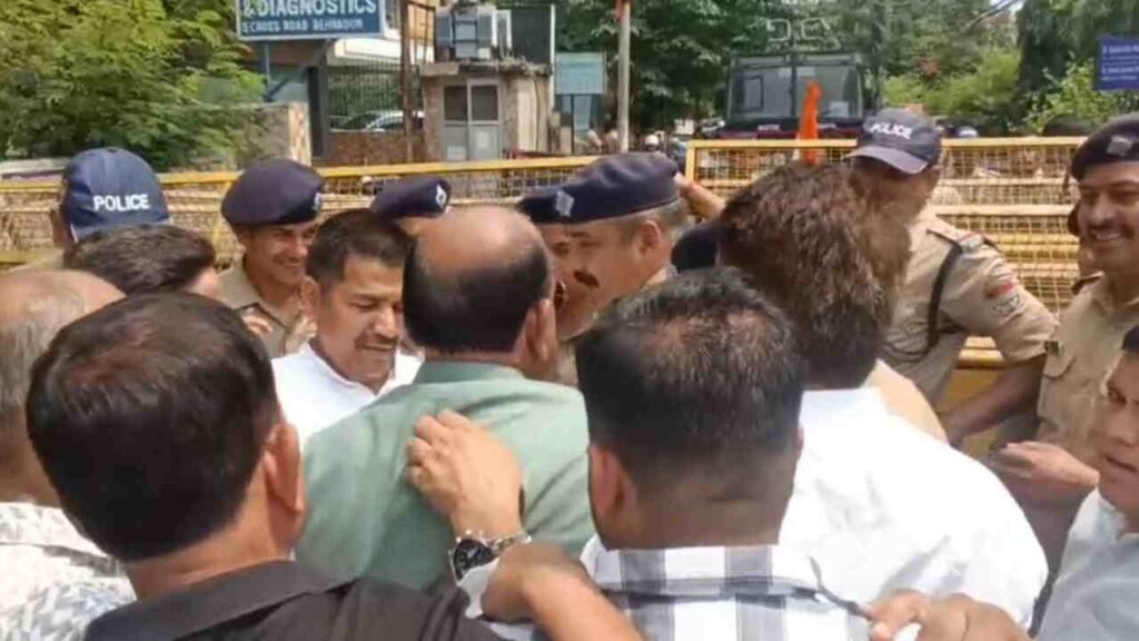 देहरादून: नेशनल हेराल्ड मामले में कांग्रेस की पूर्व अध्यक्ष सोनिया गांधी और लोकसभा में विपक्ष के नेता राहुल गांधी पर ईडी की चार्जशीट के विरोध में कांग्रेस कार्यकर्ताओं ने सड़कों पर उतरकर प्रदर्शन किया. कांग्रेसी कार्यकर्ताओं ने देहरादून स्थित ईडी दफ्तर के बाहर विरोध प्रदर्शन करके अपना आक्रोश व्यक्त किया. इस दौरान पुलिस ने प्रदर्शनकारियों को हिरासत में ले लिया और पुलिस लाइन भेज दिया.