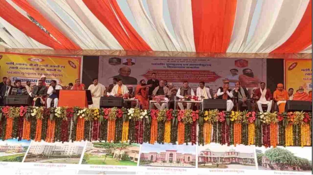 इसके बाद केंद्रीय रक्षा मंत्री राजनाथ सिंह, मध्य प्रदेश के मुख्यमंत्री मोहन यादव और मुख्यमंत्री पुष्कर सिंह धामी के साथ स्वामी दर्शनानंद गुरुकुल महाविद्यालय में ‘गुरुकुलम एवं आचार्यकुलम’ के शिलान्यास समारोह में शामिल होने पहुंचे। जहां रक्षामंत्री ने पतंजलि गुरुकुलम् की आधारशिला रखी।