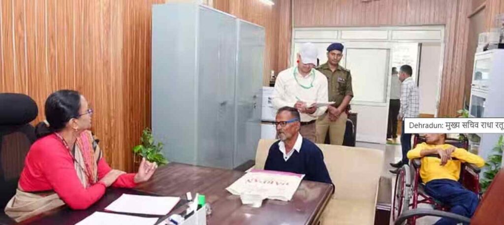 मुख्य सचिव राधा रतूड़ी ने प्रत्येक फरियादी की समस्या सुनी और संबंधित अधिकारियों को जन शिकायतों के त्वरित और संतुष्टिपरक निस्तारण के लिए निर्देश दिए।