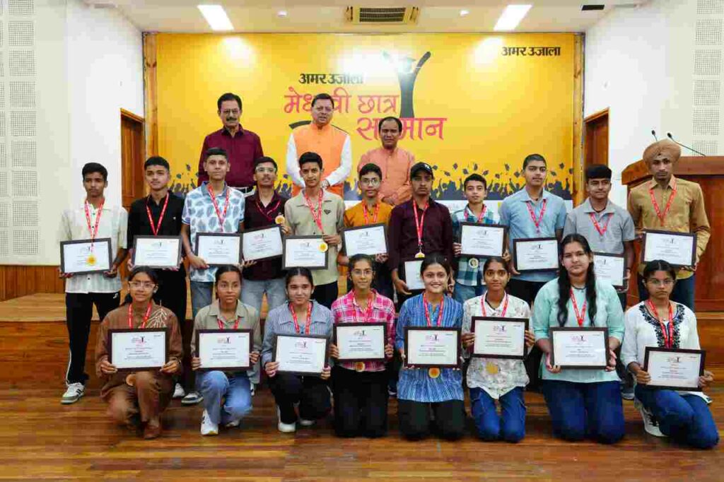 देहरादून: मुख्यमंत्री पुष्कर सिंह धामी ने मंगलवार को मुख्यमंत्री आवास स्थित मुख्य सेवक सदन में मेधावी छात्र सम्मान समारोह में उत्तराखण्ड माध्यमिक शिक्षा बोर्ड के हाईस्कूल और इण्टरमीडिएट के 75 मेधावी छात्र-छात्राओं को सम्मानित किया। एक समाचार पत्र द्वारा आयोजित कार्यक्रम में मुख्यमंत्री ने कहा कि इस सम्मान समारोह के माध्यम से अमर उजाला प्रतिवर्ष हमारे राज्य के प्रतिभावान छात्रों को सम्मानित कर उनका उत्साहवर्धन कर रहा है।