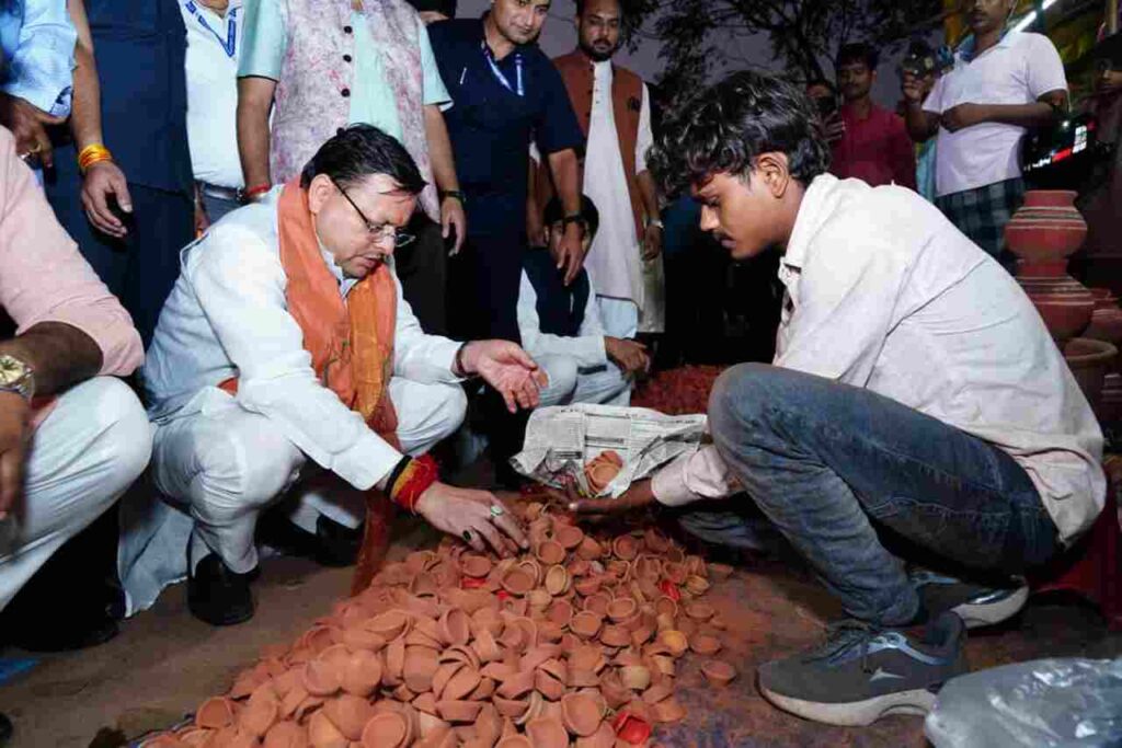 उत्तराखंड में धूमधाम से मनाई गई दीवाली, सीएम धामी ने चकराता रोड के  स्थानीय दुकानदारों से खरीदे दीये और स्वदेशी उत्पाद