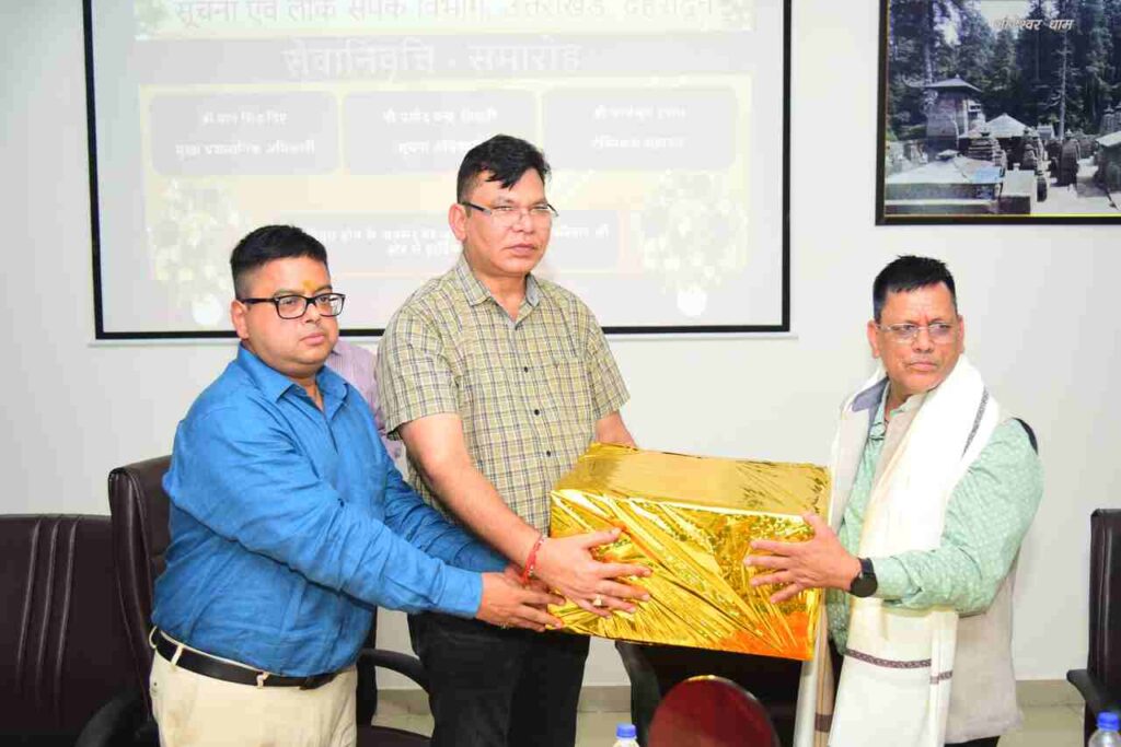 देहरादून। सूचना एवं लोक संपर्क विभाग उत्तराखण्ड में अधिवर्षता आयु पूरी करने पर मुख्य प्रशासनिक अधिकारी पान सिंह बिष्ट, सूचना अधिकारी प्रमोद चंद्र तिवारी और टेक्निकल सहायक परवेजुल हसन को विभाग की ओर से सेवानिवृत समारोह में भावभीनी विदाई दी गई। इस अवसर पर सेवानिवृत्त हुए अधिकारियों द्वारा विभाग को दिए गए सराहनीय योगदान को अधिकारियों और कर्मचारियों ने याद किया।