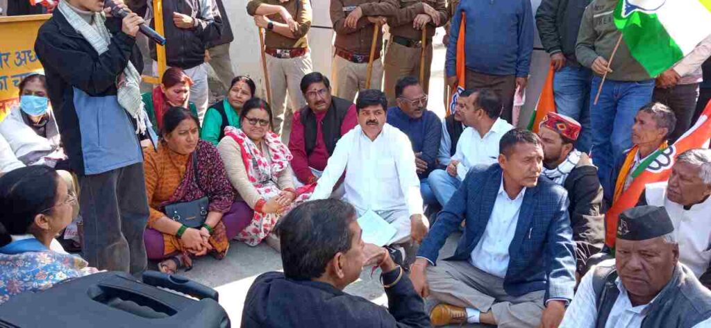 गणेश गोदियाल ने मांगा स्वास्थ्य मंत्री धन सिंह का इस्तीफा, डायलिसिस सुविधा बंद होने पर बेस अस्पताल में दिया धरना