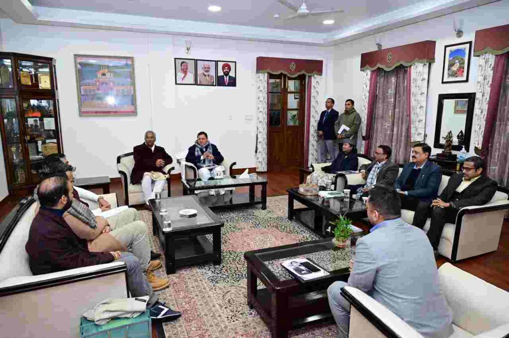 देहरादून: मुख्यमंत्री पुष्कर सिंह धामी से शनिवार को मुख्यमंत्री आवास पर फ्रैंकफर्ट (जर्मनी) के संसद सदस्य राहुल कुमार कंबोज ने भेंट की। इस अवसर पर हरिद्वार सांसद एवं पूर्व मुख्यमंत्री त्रिवेंद्र सिंह रावत भी उपस्थित थे।