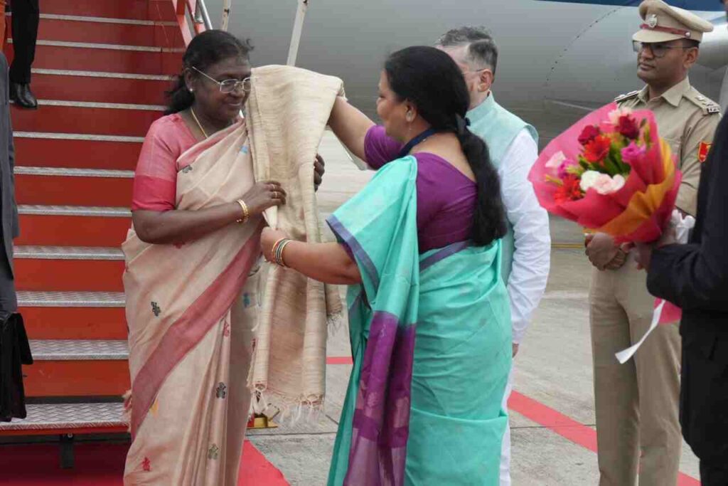 रांची/ देवघर। राष्ट्रपति द्रौपदी मुर्मु दो दिवसीय दौरे पर झारखंड पहुंचीं। देवघर हवाई अड्डे पर उनका स्वागत राज्यपाल संतोष गंगवार एवं राज्य सरकार की मंत्री दीपिका पांडेय सिंह ने किया।