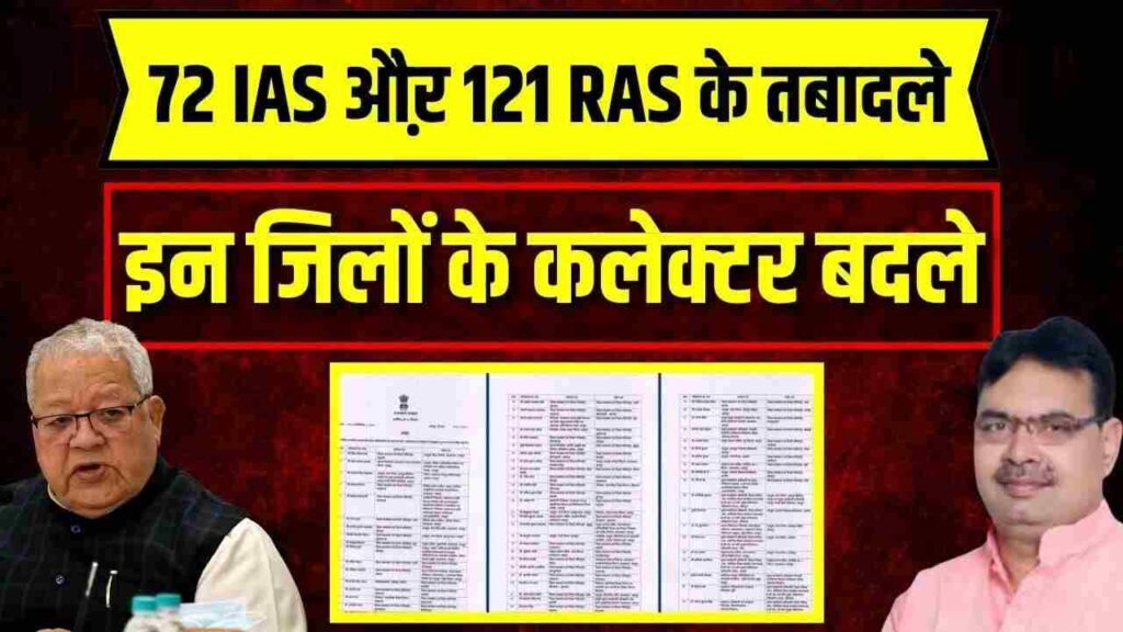 राजस्थान में बड़ा प्रशासनिक फेरबदल, 72 IAS और 121 RAS अधिकारियों का किया तबादला; यहां देखें पूरी लिस्ट