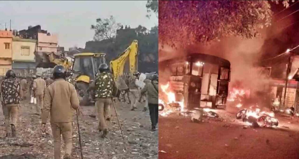 हल्द्वानी के भंपुलपुरा में मदरसे को अवैध बताते हुए नगर निगम ने चलाया बुलडोज़र, स्थानियों द्वारा बुलडोज़र का विरोध करने पर पुलिस ने किया लाठीचार्ज,महिलाओं पर भी लाठीचार्ज किया गया जिसमें पुलिस व स्थानीय घायल हुए, अब भंपुलपुरा में आगजनी की खबरें आ रही है जिसके बाद वहां कर्फ़्यू लगा… pic.twitter.com/BtFE6252N8