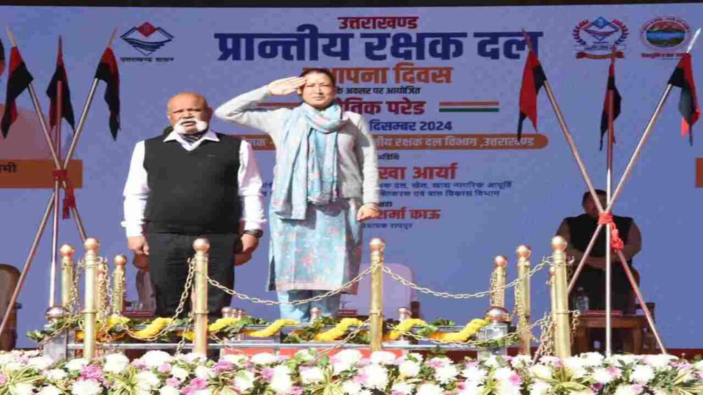 युवा कल्याण निदेशालय मैदान ननूरखेड़ा में PRD का स्थापना दिवस धूम धाम से मनाया गया. रैतिक परेड के आयोजन में पहुंची कैबिनेट मंत्री रेखा आर्या ने सबसे पहले खुले वाहन में सवार होकर परेड का निरीक्षण किया. इसके बाद परेड ने मंच के सामने तेज चाल चलते हुए कैबिनेट मंत्री को सलामी दी. इस अवसर पर कैबिनेट मंत्री रेखा आर्या ने कहा पहले प्रांतीय रक्षक दल का स्थापना दिवस नियमित रूप से नहीं मनाया जाता था, लेकिन मुख्यमंत्री पुष्कर सिंह धामी के नेतृत्व में हमारी सरकार ने 2022 से यह तय किया कि हर साल स्थापना दिवस मनाया जाएगा. उन्होंने मंच से ही स्थापना दिवस के आयोजन हर जिले में करने के निर्देश में विभाग के अधिकारियों को दिए . उन्होंने कहा चाहे चुनाव हो या चार धाम यात्रा, या फिर कहीं कानून व्यवस्था की समस्या हो, हर जगह पीआरडी के जवानों ने बढ़ चढ़कर भागीदारी निभाई है.