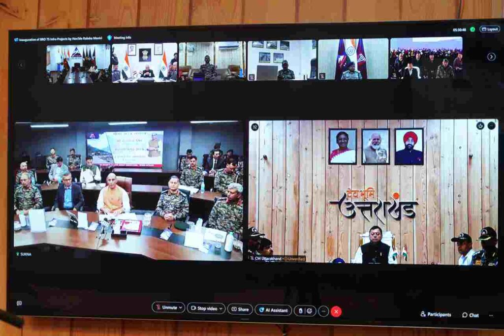 देहरादून: रक्षा मंत्री राजनाथ सिंह ने शनिवार को सीमा सड़क संगठन की ओर से बनाए गए 75 प्रमुख बुनियादी ढांचा परियोजनाओं का लोकार्पण कर राष्ट्र को समर्पित किया. इन सभी परियोजनाओं में कुल नौ परियोजनाएं उत्तराखंड की भी शामिल हैं. लोकार्पण कार्यक्रम में वर्चुअल रूप से शामिल हुए मुख्यमंत्री पुष्कर सिंह धामी ने उत्तराखंड की नौ परियोजनाओं का लोकार्पण करने पर रक्षा मंत्री राजनाथ सिंह का आभार व्यक्त किया.