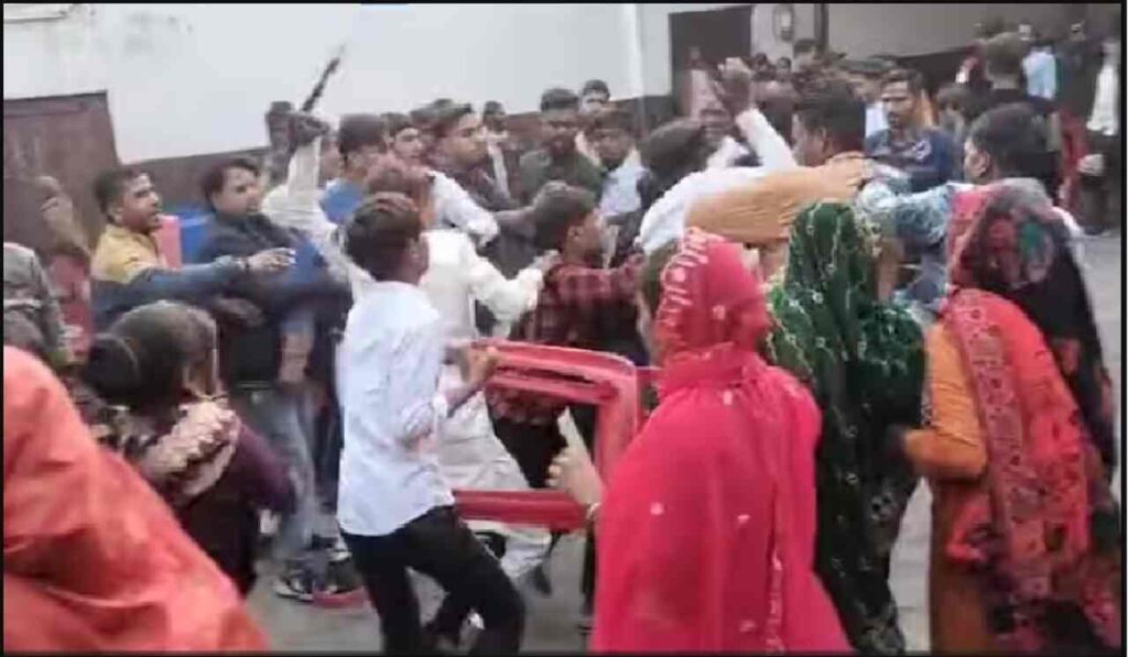 अलीगढ़- शादी समारोह के दौरान जमकर चले लात घूंसे,शादी समारोह में एक दूसरे पर फेंकी गई कुर्सियां, मारपीट में दूल्हे पक्ष के कई लोग हुए घायल,शादी समारोह में नाश्ते को लेकर हुआ विवाद,सासनी गेट के भुजपुरा स्थित निजी गेस्ट हाउस की घटना.#Aligarh pic.twitter.com/NzSmGiKVDX