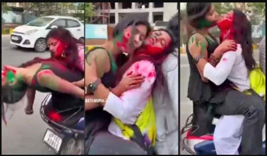 वायरल हो रहा यह वीडियो भी उत्तर प्रदेश के नोएडा का बताया जा रहा है. इसमें एक युवक स्कूटी चलाता नजर आ रहा है. वहीं, उसके पीछे वाली सीट पर एक लड़की खड़ी होकर रील बनवाती दिख रही है. वीडियो में देखा जा सकता है कि लड़की कैसे चलती स्कूटी पर होली खेल रही है. वीडियो में लड़की स्कूटी चला रहे शख्स को चेहरे पर रंग लगा रही है, लेकिन अगले ही पल रील के चक्कर में लड़की गाड़ी से नीचे गिर जाती है.