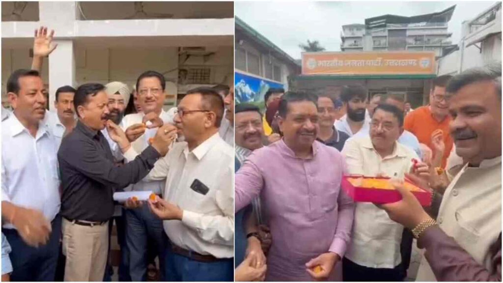 देहरादून: चुनाव परिणाम जारी होने के बाद अक्सर राजनीतिक दलों के दफ्तरों में भी उनकी जीत का जश्न या हार की मायूसी दिखती है. लेकिन उत्तराखंड पंचायत चुनाव में इस बार कुछ अलग ही दिख रहा है. पहली बार कांग्रेस-बीजेपी दोनों ही पार्टियों के दफ्तरों से जश्न मनाया गया. कांग्रेस और बीजेपी दोनों ही उत्तराखंड पंचायत चुनाव में अपनी-अपनी जीत का दावा कर रही हैं. स्थिति यह है कि कांग्रेस भवन में भी मिठाइयां बंट रही हैं और भाजपाई नेता भी आतिशबाजी कर खूब थिरक रहे हैं.