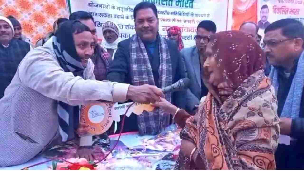 सांसद ने PM आवास योजना की चाबी महिला को सौंपी.