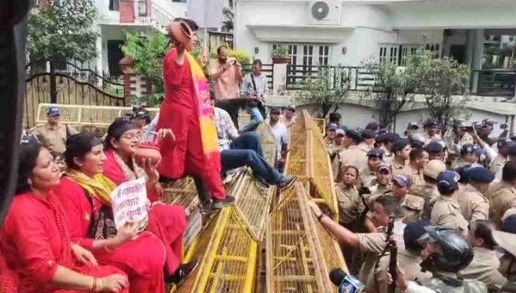 देहरादून: प्रदेश में महिलाओं के प्रति बढ़ते अपराध की रिपोर्ट सार्वजनिक होने पर प्रदेश महिला कांग्रेस ने भाजपा कार्यालय कूच किया। प्रदेश अध्यक्ष ज्योति रौतेला के साथ कांग्रेसी बलवीर रोड स्थित भाजपा कार्यालय का घेराव करने पहुंचे। पुलिस ने बैरिकेडिंग कर प्रदर्शनकारियों को रोक दिया। कांग्रेसियों ने इस दौरान जमकर नारेबाजी की। महिला कांग्रेस कार्यकर्ता वहीं पर धरने पर बैठ गईं। कांग्रेस ने प्रदेश में महिलाओं के खिलाफ बढ़ते अपराधों की बात कहते हुए भाजपा पर हमला बोला। इस दौरान पूर्व मंत्री हरक सिंह रावत भी प्रदर्शन में शामिल हुए। उन्होंने भी भाजपा सरकार पर गंभीर आरोप लगाए। हंगामे के दौरान पुलिस ने महिला कांग्रेस प्रदेश अध्यक्ष ज्योति रौतेला सहित पूर्व मंत्री हरक सिंह रावत और अन्य कांग्रेसियों को गिरफ्तार कर लिया। जिनको बाद में रिहा किया गया।